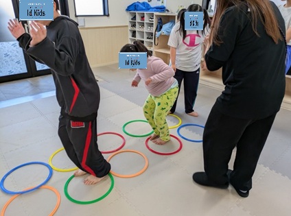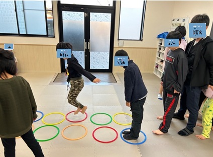 フープジャンプでは順番を守ったり、フープ取りゲームではルールを守ったり、しっかりできてたね!