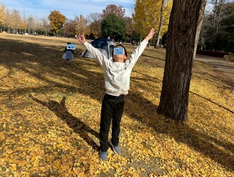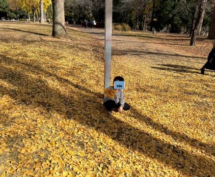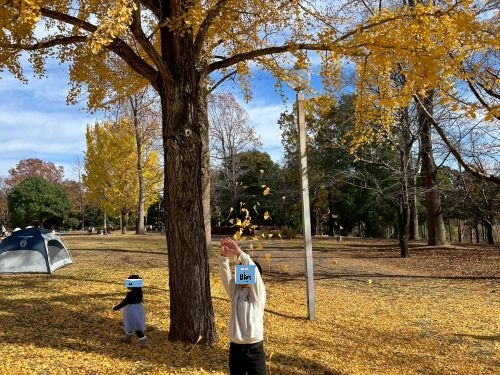 イチョウの落ち葉が積もった黄色いじゅうたんや広い芝生の上をみんなで走り回ったり存分に楽しみました😉