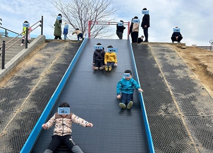 大きな滑り台も、なんども何度も、さらにいろんなすべり方で楽しんでました。