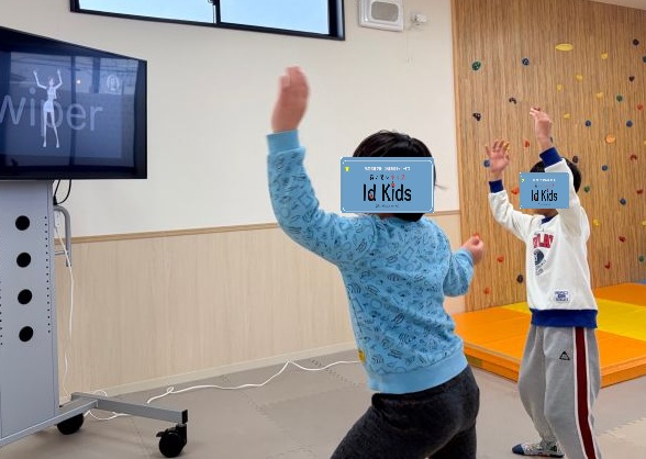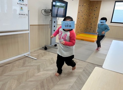 先ずは3分間走。あいでぃキッズの広い部屋を活かして3分間駆け回りました。